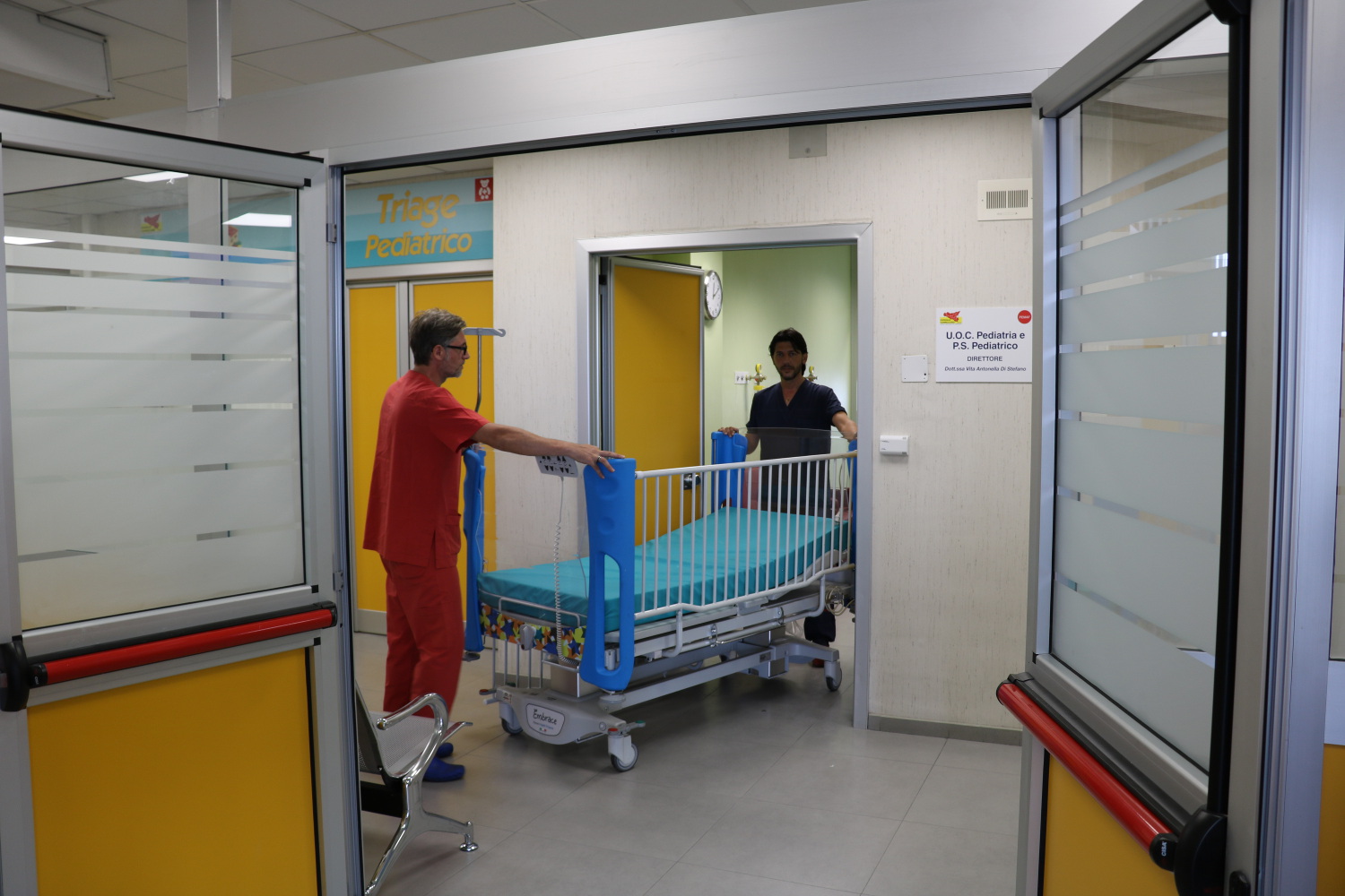 A partire da giovedì prossimo, 18 luglio, infatti, saranno in funzione il triage, gli ambulatori con locali per l’osservazione breve e la sala d’attesa, che si trovano alle spalle degli attuali locali e che sono stati oggetto di intervento di rifunzionalizzazione. Grazie alla ricollocazione e razionalizzazione di alcune attività ambulatoriali, il PS pediatrico guadagna così spazio passando dagli attuali 80 mq a 120 mq e il triage diventa accessibile attraverso un percorso autonomo anche dall’ingresso esterno di fronte all’elibase. Inoltre, le postazioni di osservazione dei piccoli pazienti passano dalle attuali 4 a 6, compresa una postazione dedicata a paziente con sospetta patologia potenzialmente trasmissibile. Tra i nuovi locali è stata realizzata anche una “baby room”, una stanzetta in cui i pazienti più piccoli possono attendere la visita o l’esame diagnostico con il conforto di cartoni animati e giochi.
