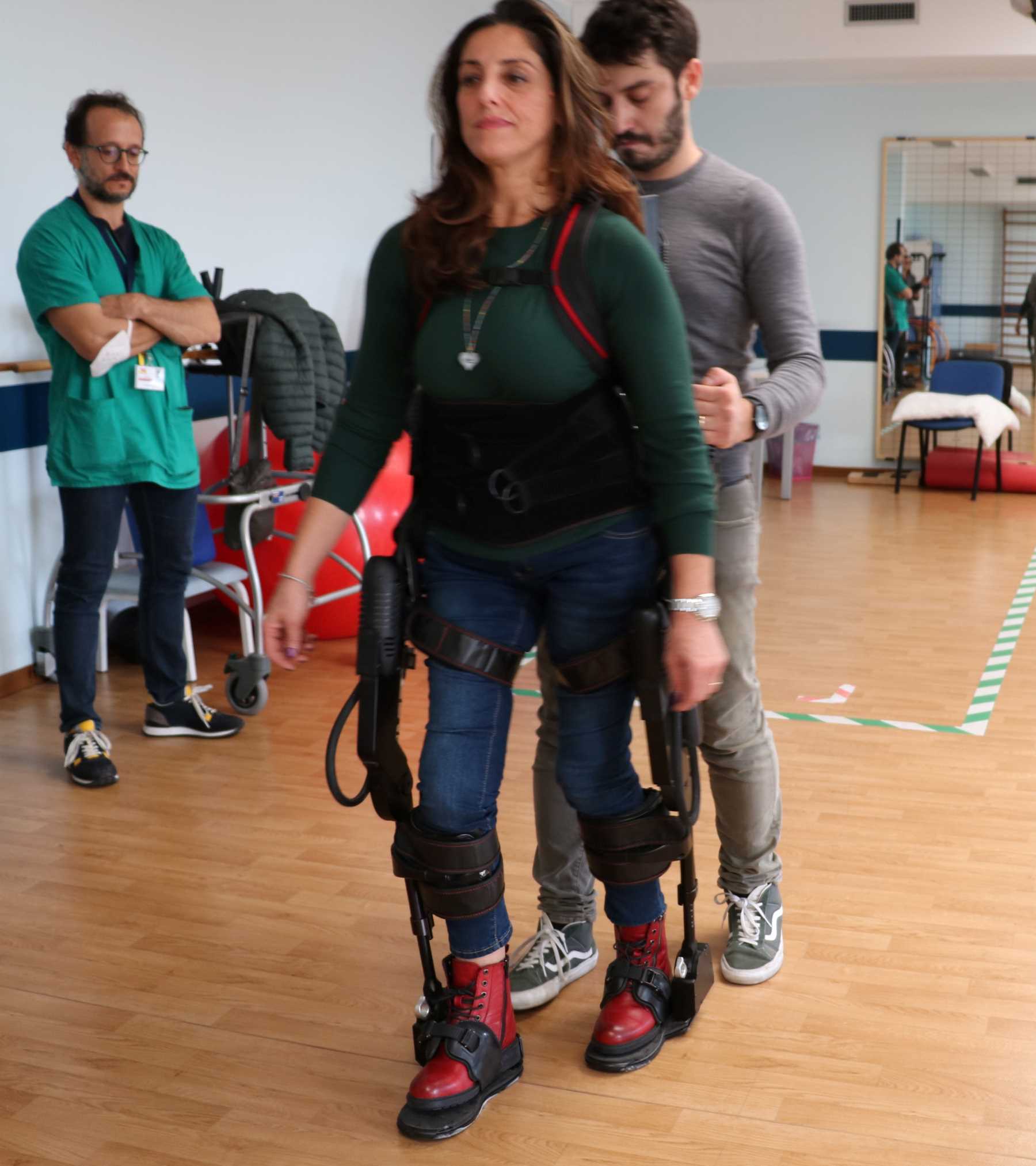 Spiega la dott.ssa Maria Pia Onesta, direttore dell’USU: «L’esoscheletro permette alle persone con limitate capacità motorie di andare in posizione ortostatica e deambulare, in ambiente protetto, con rilevanti benefici non solo a livello scheletrico, ma anche sulla circolazione, sulla vescica e sull’intestino grazie proprio al ritorno, sebbene limitato, alla posizione eretta che per l’uomo è quella naturale. È un ausilio utilizzabile nel percorso di riabilitazione, con assistenza specialistica, quindi non da indossare nella vita quotidiana».